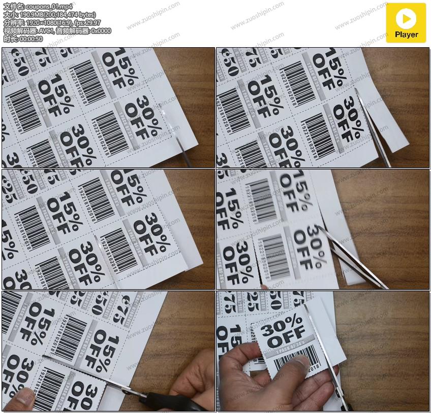 追功网为大家提供高清实拍视频素材社会人文系列素材:剪刀剪优惠券纸张视频素材在线预览以及高清源文件的下载服务。削减优惠券