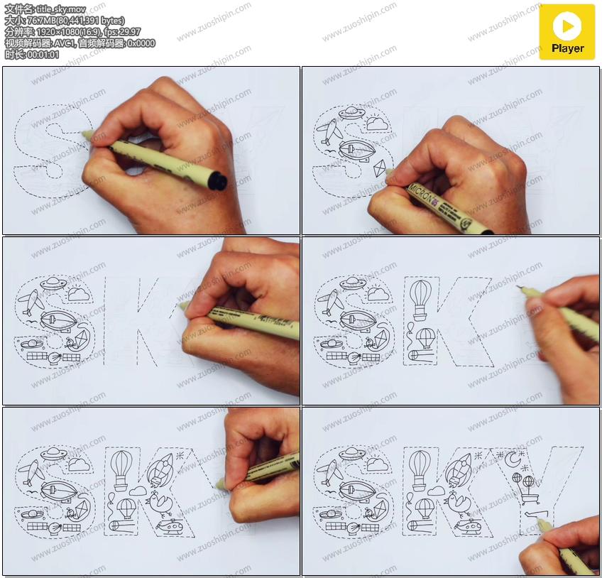 Timelapse of a person drawing a sky doodle, for your creative projects or drawing topics in your footage.