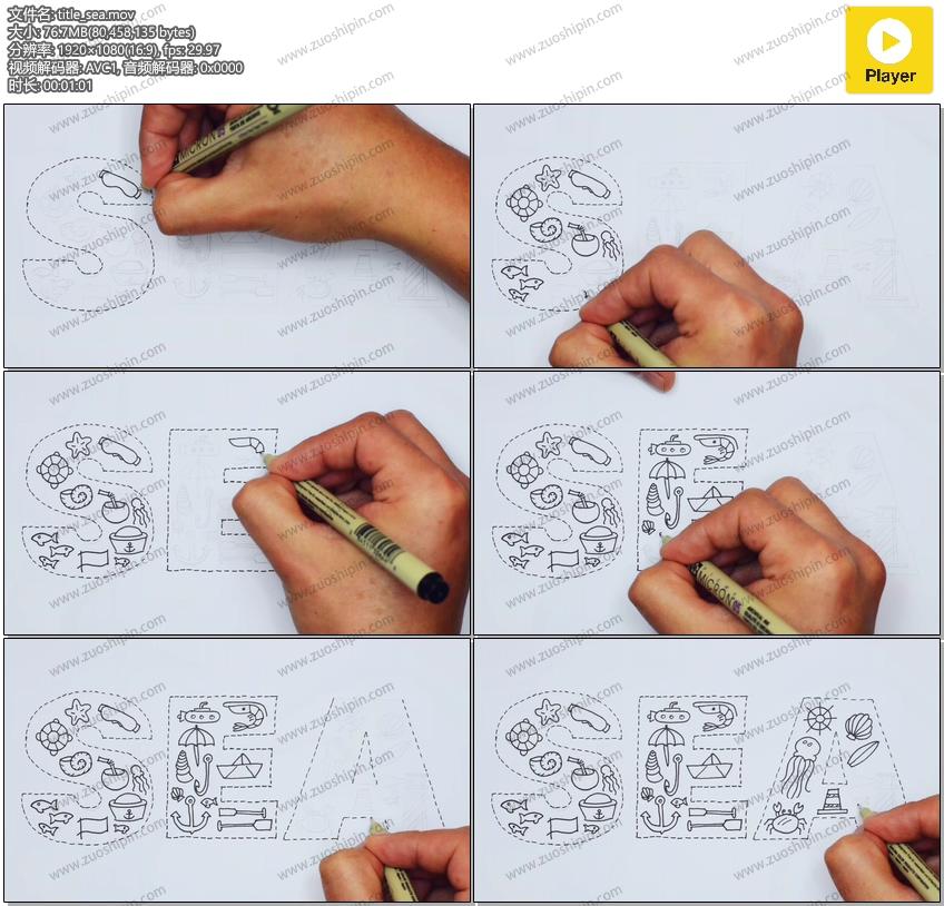 Timelapse of a person drawing a sea doodle, for your creative projects or drawing topics in your footage.