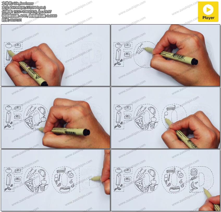 Time lapse of a person drawing a food doodle, for your creative projects or drawing topics in your footage.