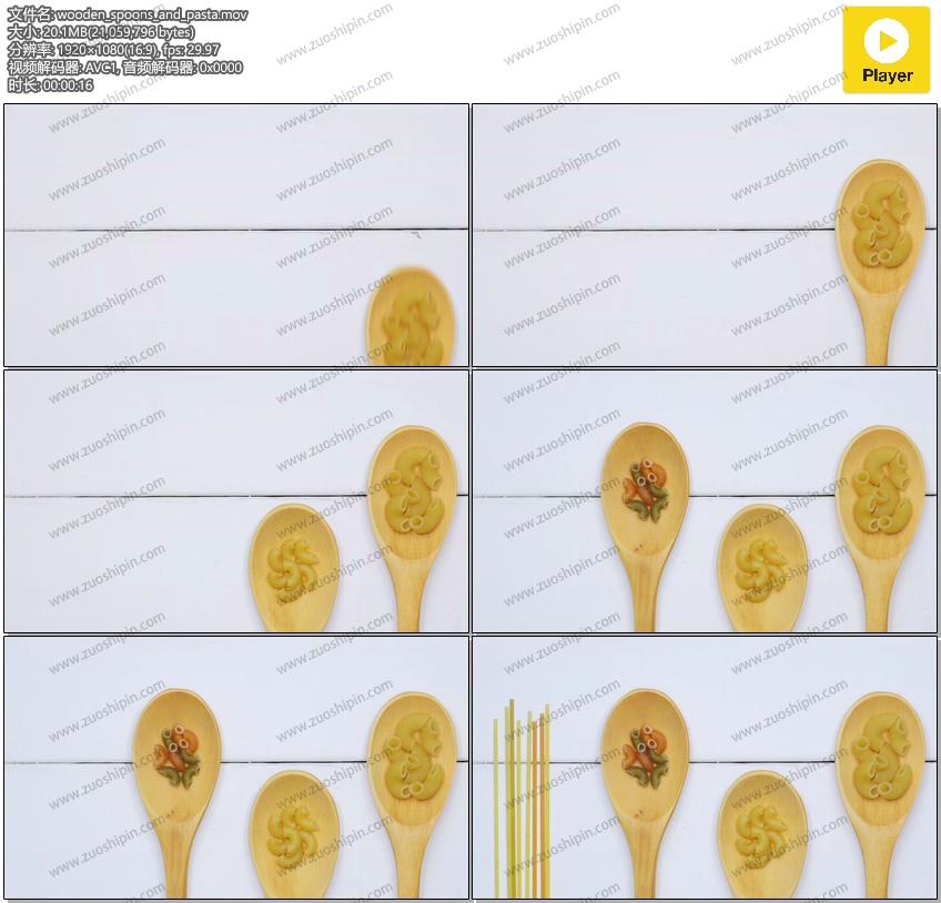 Person placing wooden spoons with raw pasta on table for your cuisine projects or recipe topics in your footage.