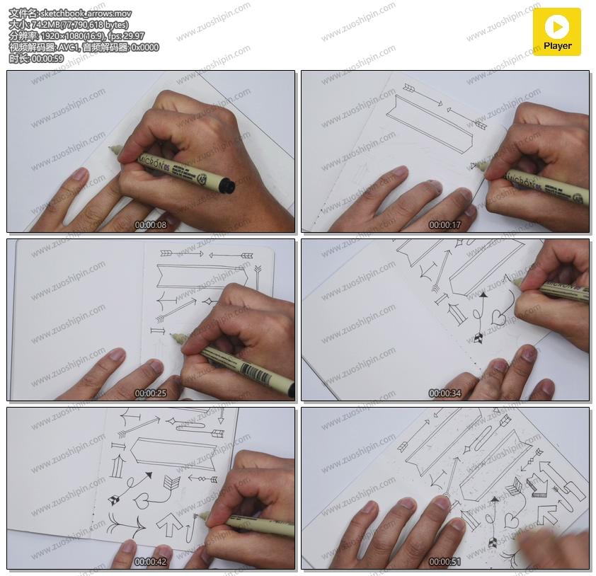 追功网为大家提供高清实拍视频素材社会人文系列素材:速写本上绘制卡通箭头图案视频素材在线预览以及高清源文件的下载服务。
