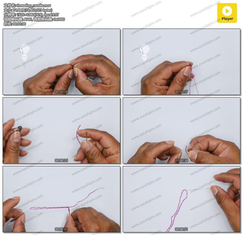 Woman 穿针 in two ways for your craft projects or sewing topics in your footage.