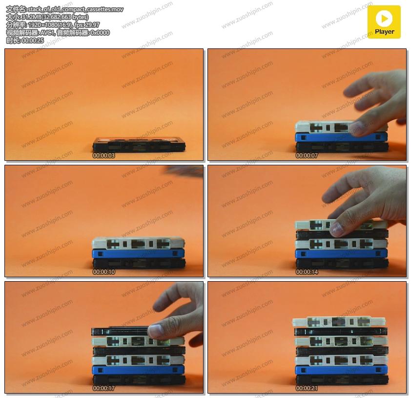 追功网为大家提供高清实拍视频素材物品电器系列素材:一堆旧的小型磁带视频素材在线预览以及高清源文件的下载服务。