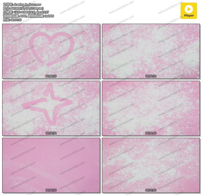 Drawing in flour clip for your kitchen projects or bakery topics in your footage.