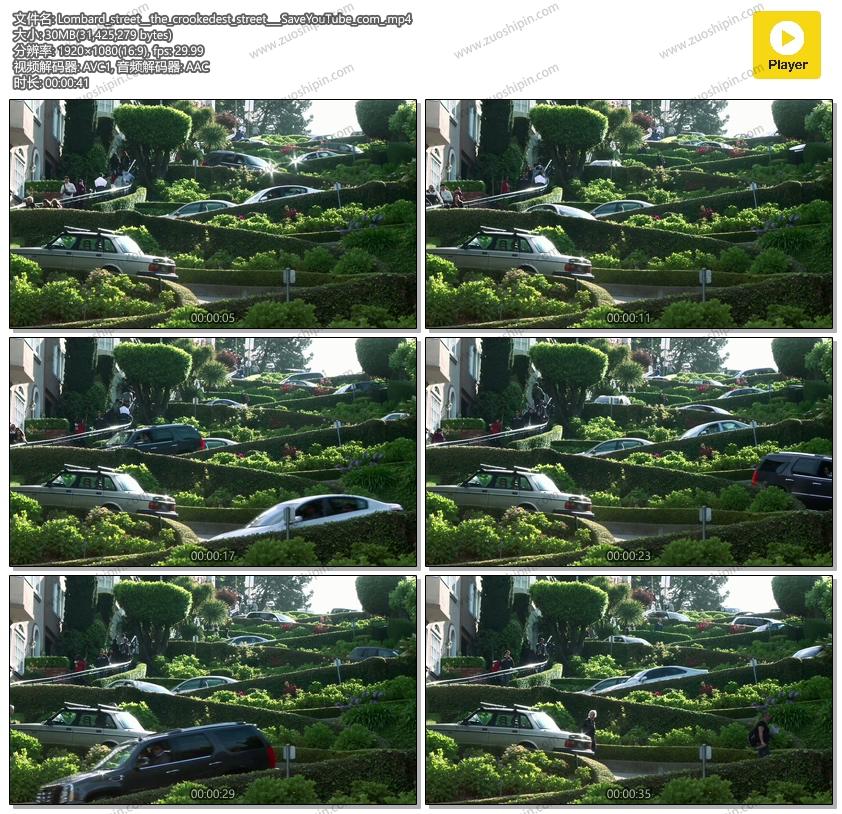 免费朗伯德街高清视频在旧金山“弯曲的街道”!这个伦巴第街头高清视频拍摄的高清晰度和捕获大量的汽车沿曲线弯曲的道路行驶!