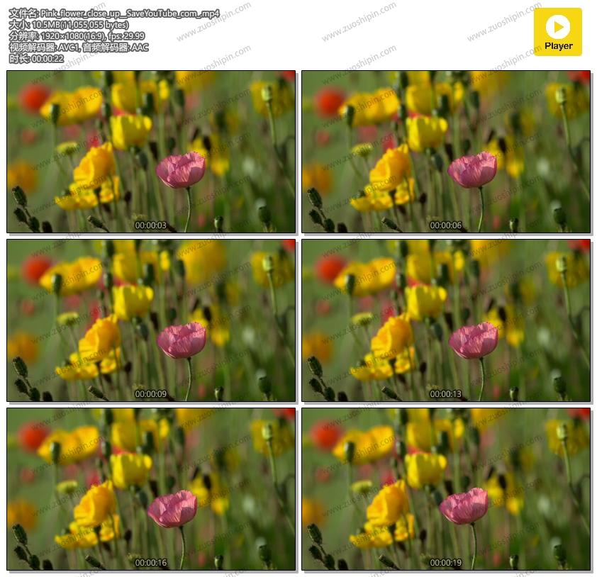 充分桃红色花关闭一个美好的领域的储蓄录影鸦片花和草!在这粉红色的花关闭高清视频,你会看到一个漂亮的粉红色的花在前景和明亮的快乐黄色的花朵在后面。这将是一个伟大的背景镜头!
