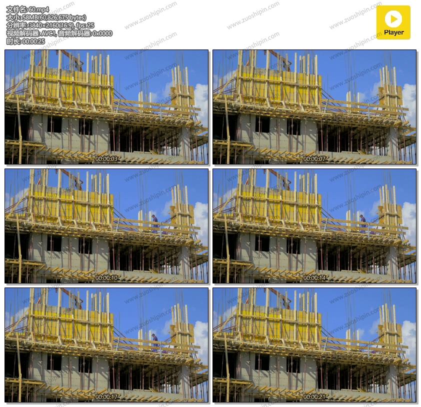 盖楼房建筑工人钉钉子4K视频素材