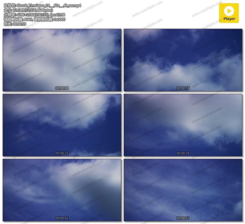 云彩和天空室外夹子。延时摄影的清除卷云和积云慢慢地移动。适合您的天气项目或您的镜头中的自由和天堂主题。 4K 4096 x 2160 | 24 fps