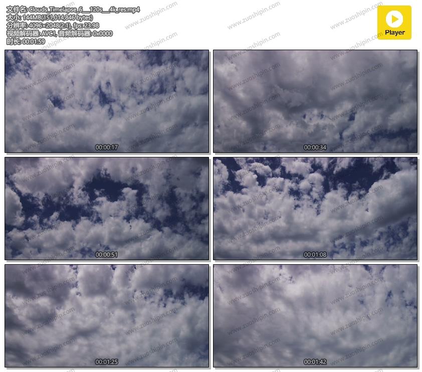 云彩和天空室外夹子。接近照相机的卷积云时间间隔。适合您的天气项目或您的镜头中的自由和天堂主题。 4K 4096 x 2048 | 24 fps