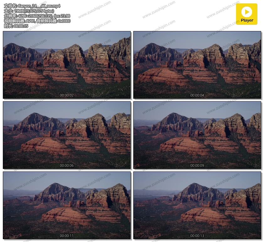 一个红色峡谷风景的夹子。平移拍摄的红色山峰和绿色山谷。适合您的旅行项目或您的镜头中的地理主题。 4K 4096 x 2160 | 24 fps