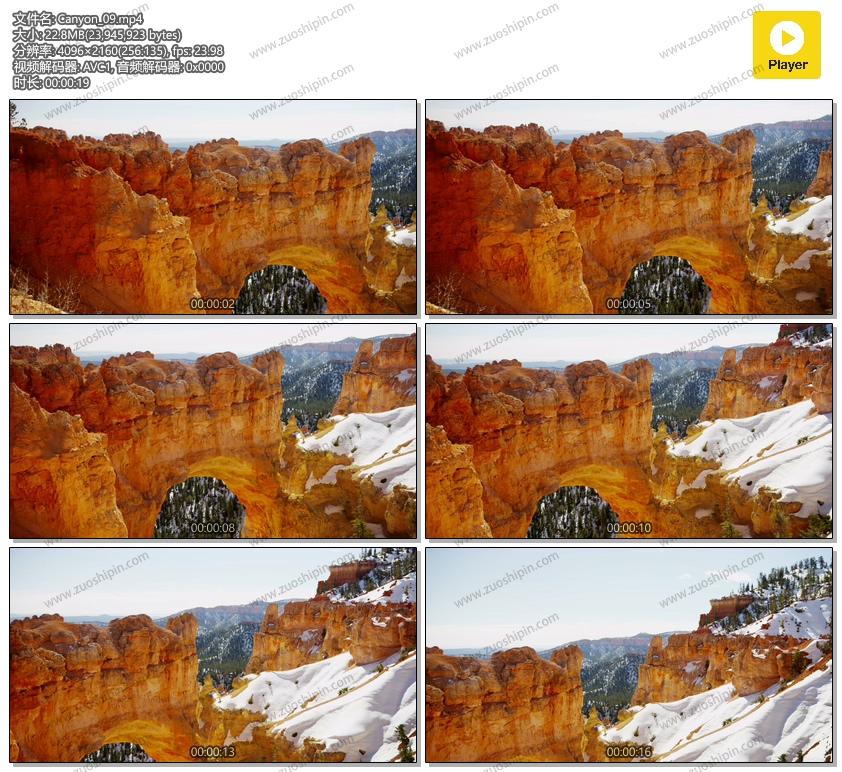 追功网为大家提供高清实拍视频素材自然风景系列素材:红色石曲拱和下雪的山谷4K视频素材在线预览以及高清源文件的下载服务。