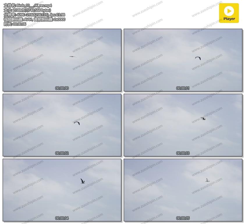 鸟夹子在自然的。拍摄与蓝天的海鸥飞行在背景。适合您的动物群项目或素材中的自然主题。 4K 4096 x 2160 | 24 fps
