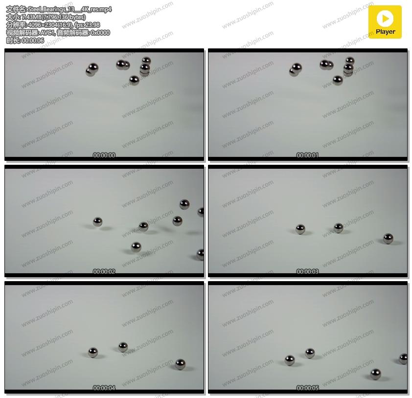 金属工具室内拍摄。落和弹起在白色桌上的一个大小小金属球。适用于您的镜头中的行业项目或机械主题。 4K 4096 x 2304 | 24 fps