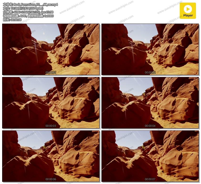 沙漠风景室外拍摄。在显示橙色墙壁和岩石的自然地质结构里面的旅行的拍摄。适合您的旅行项目或您的镜头中的自然主题。 4K 4096 x 2160 | 24 fps