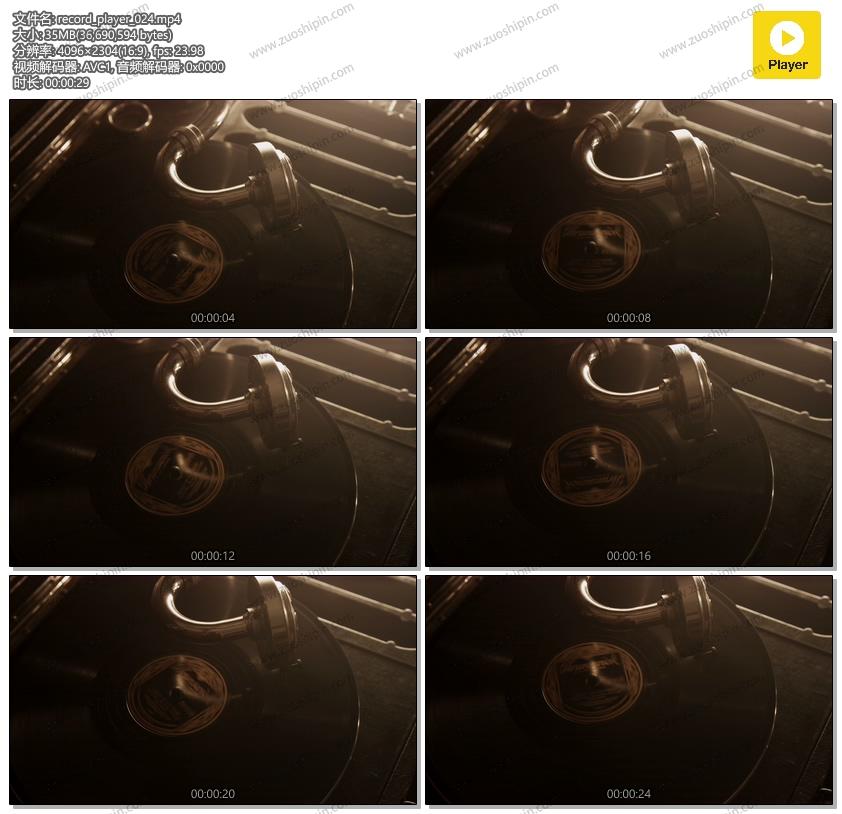关闭古色古香的音乐设备拍摄。垂直旅行拍摄从上到下的经典电唱机与明亮的光线背后。非常适合您的音乐项目或您的镜头中的复古主题。 4K 4096 x 2304 | 24 fps