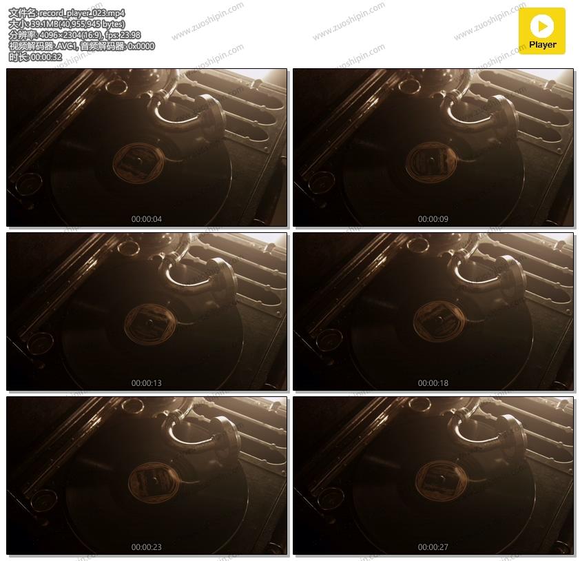 关闭古色古香的音乐设备拍摄。中等平移从经典唱机的右到左拍摄,背后有明亮的光线。非常适合您的音乐项目或您的镜头中的复古主题。4K4096x2304|24fps