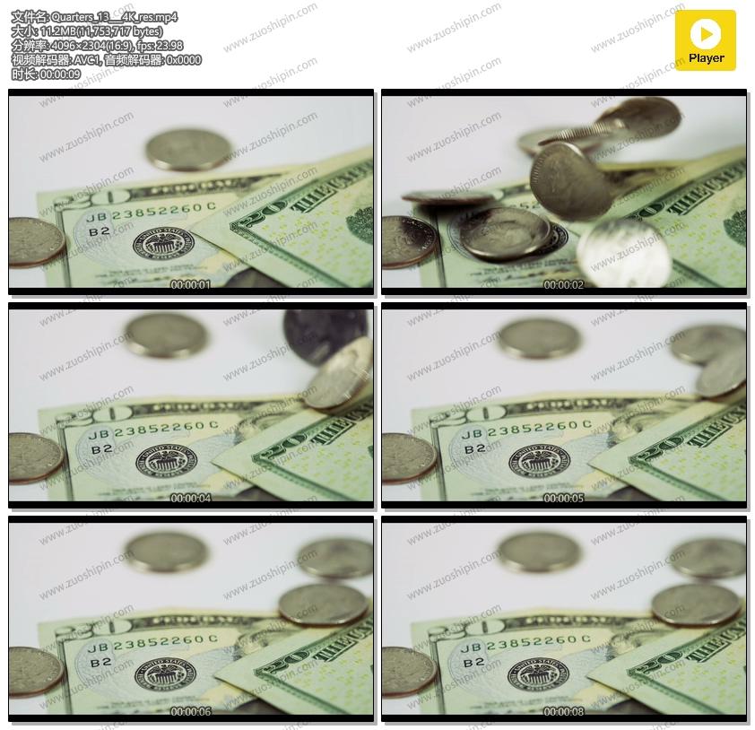 追功网为大家提供高清实拍视频素材金融商业系列素材:美元钞票在白色桌子上几枚硬币掉落4K视频素材在线预览以及高清源文件的下载服务。