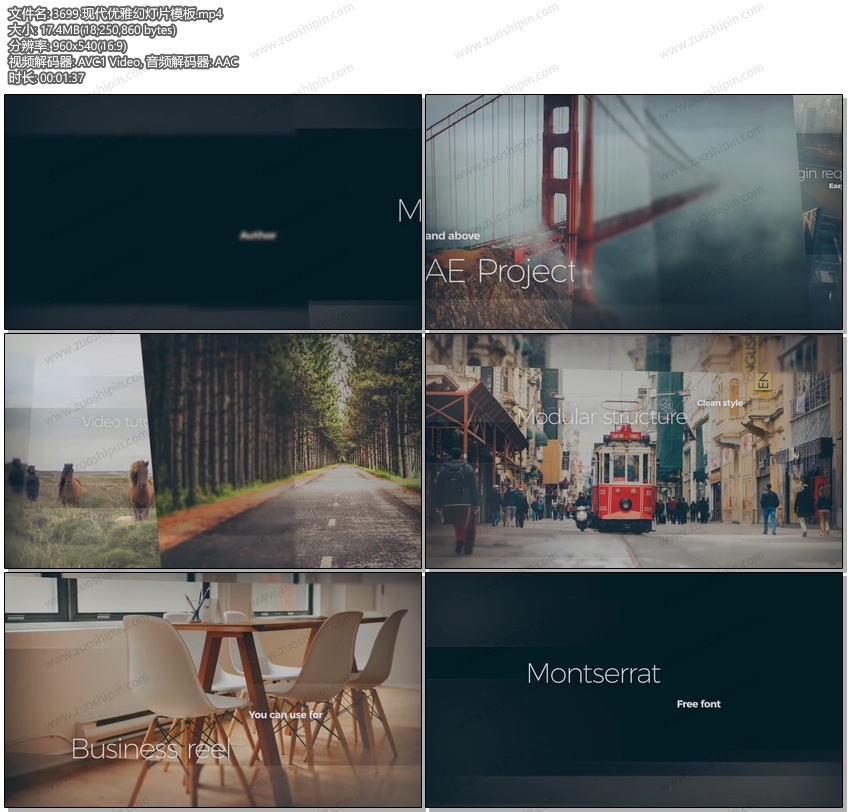 关键词:电影,清洁,商业,企业,展示,优雅,时尚,照片,制作演示,促销,showreel,幻灯片,流畅,时尚,标题cinematic, clean, commercial, corporate, display, elegant, fashion, photo, production demo, promo, showreel, slideshow, smooth, stylish, titles