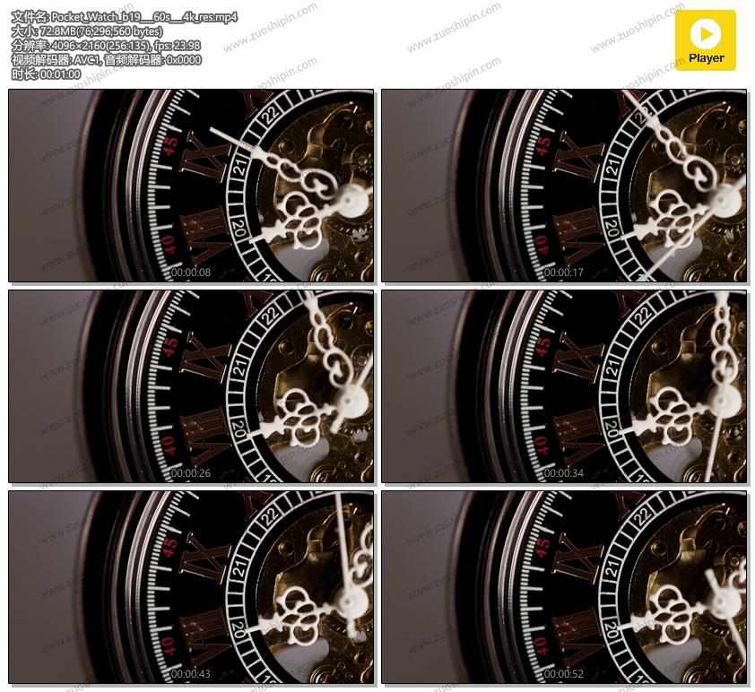 极端特写的怀表与暴露机械工作从7点44分到8点06分在4K延时摄影