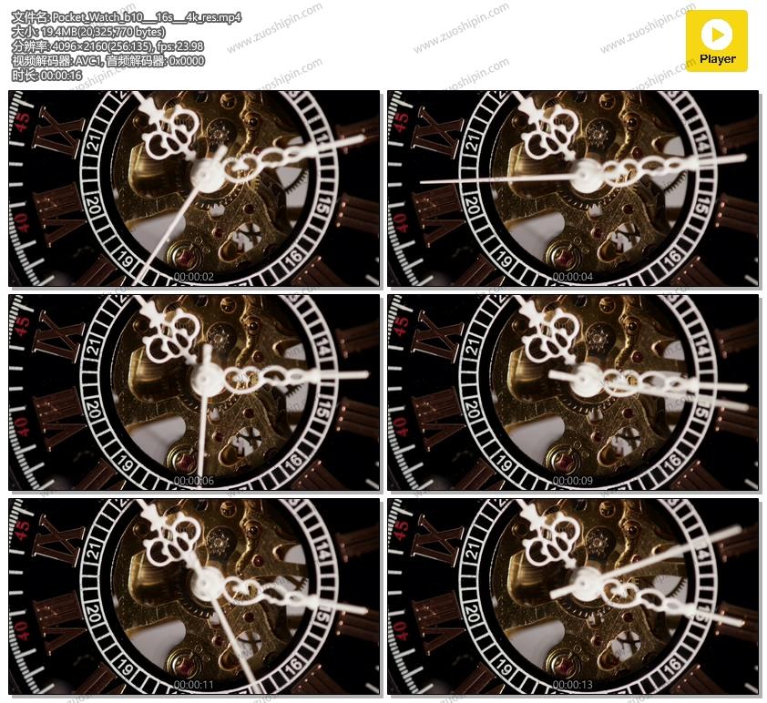 Close up shot of pocket watch. <极端接近怀表与暴露的机械工作从10月10日到10月15日在4K时间间隔. Ideal for your vintage projects or antiques topics in your footage. 4K 4096 x 2160 | 24 fps