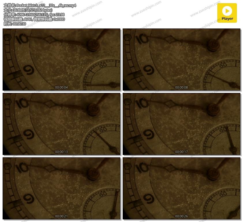 关闭怀表拍摄。 极端接近的秒钟时钟手移动三十秒拍摄,开始在4K时间间隔的第二个45。 适合您的老式项目或镜头中的古董主题。 4K 4096 x 2160 | 24 fps
