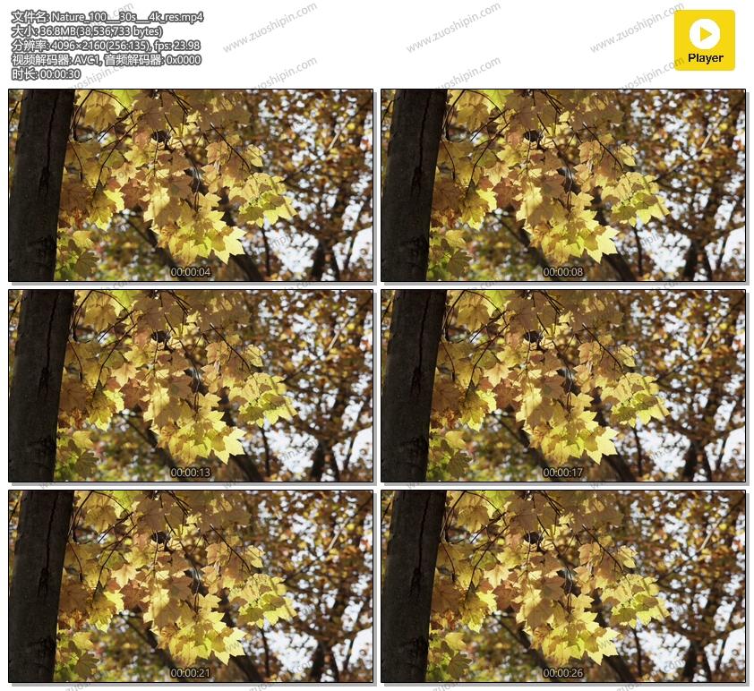 秋天被风吹动的树叶视频