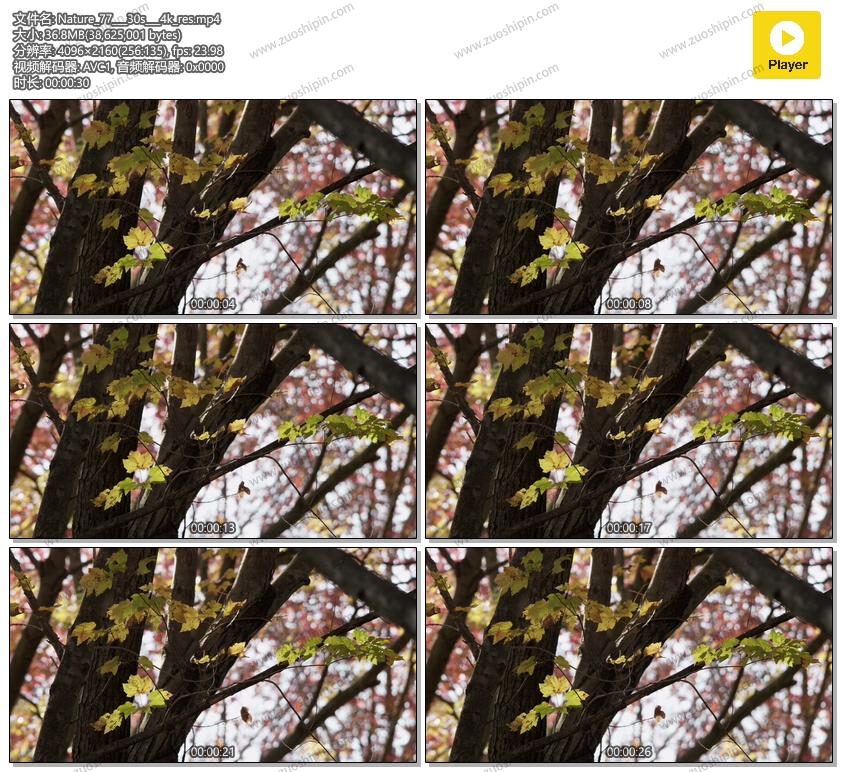 大树静态拍摄与少量绿色和黄色的在4K离开