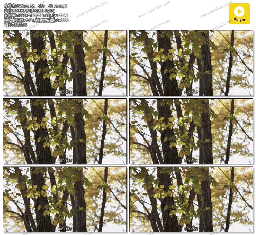 追功网为大家提供高清实拍视频素材植物景观系列素材:低角度拍摄了绿色叶子,分支和树干在清楚的天空背景4K视频在线预览以及高清源文件的下载服务。