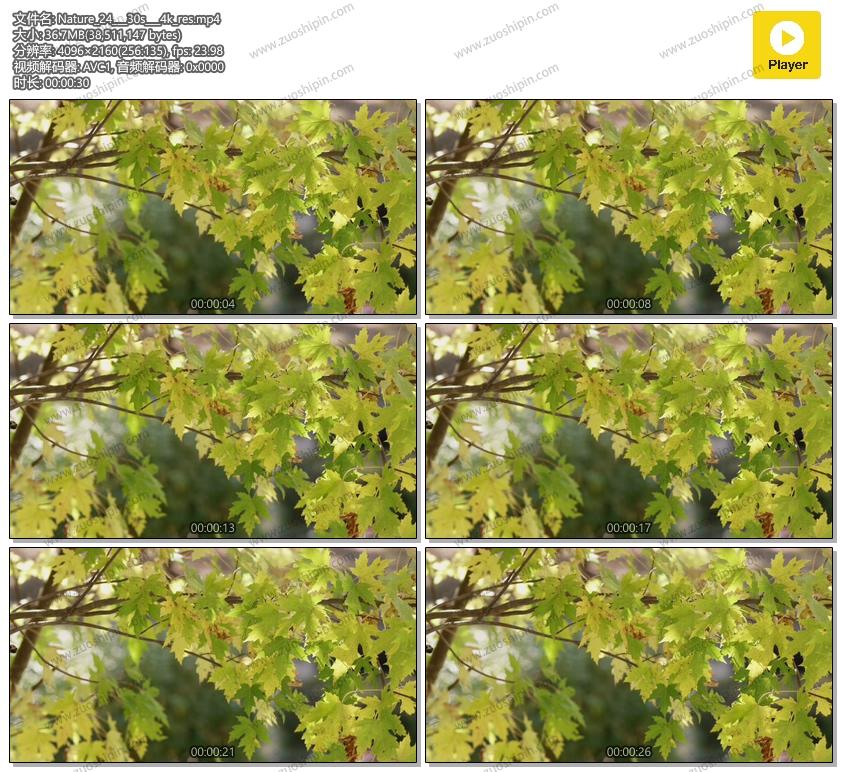 红色和黄色杂色的叶子被风吹动4K视频素材Nature_61___30s___4k_res