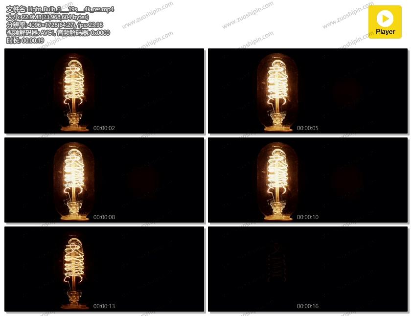 追功网为CG后期爱好者提供高清实拍视频素材物品电器系列素材:爱迪生灯泡螺旋灯丝4K视频素材Light_Bulb_3___19s___4k_res在线预览以及高清源文件的下载服务。