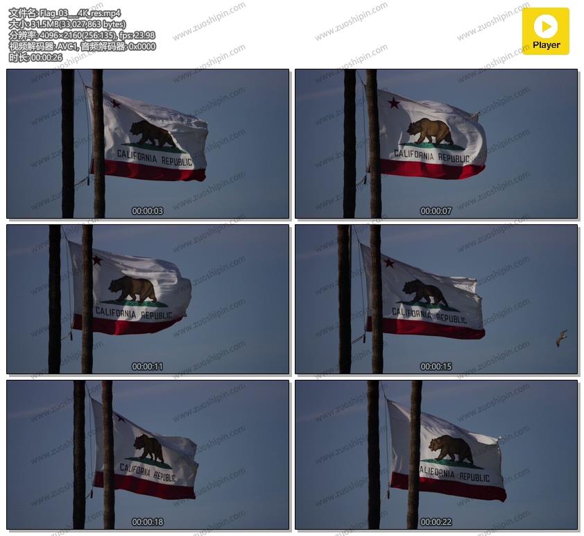 加利福尼亚州的国旗被风吹动4K视频素材Flag_03___4K_res