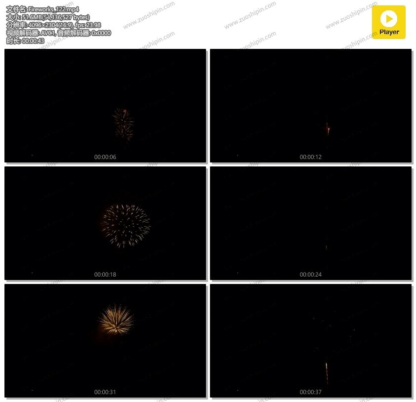 夜间的壮观烟花片段。为美丽的烟花装饰的欢乐夜场面轻率冒险。适合您的周年纪念项目或您的镜头中的庆祝主题。 4K 4096 x 2304 | 24 fps