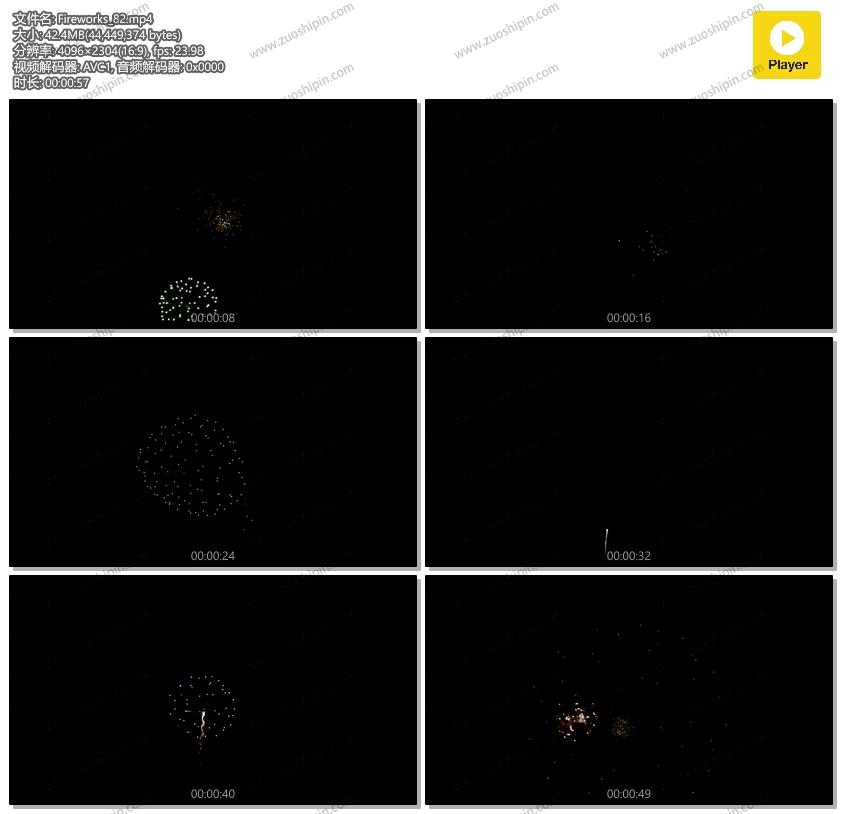 夜间的壮观烟花片段。夜间场景与闪光和牡丹烟花的节日主题。适合您的周年纪念项目或您的镜头中的庆祝主题。 4K 4096 x 2304 | 24 fps