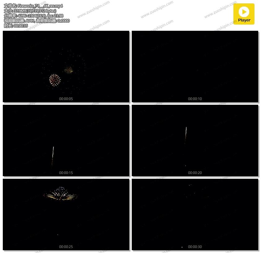 夜间的壮观烟花片段。 Mulicolor闪光,牡丹和花束效果在夜空中发光的烟花。适合您的周年纪念项目或您的镜头中的庆祝主题。 4K 4096 x 2304 | 24 fps