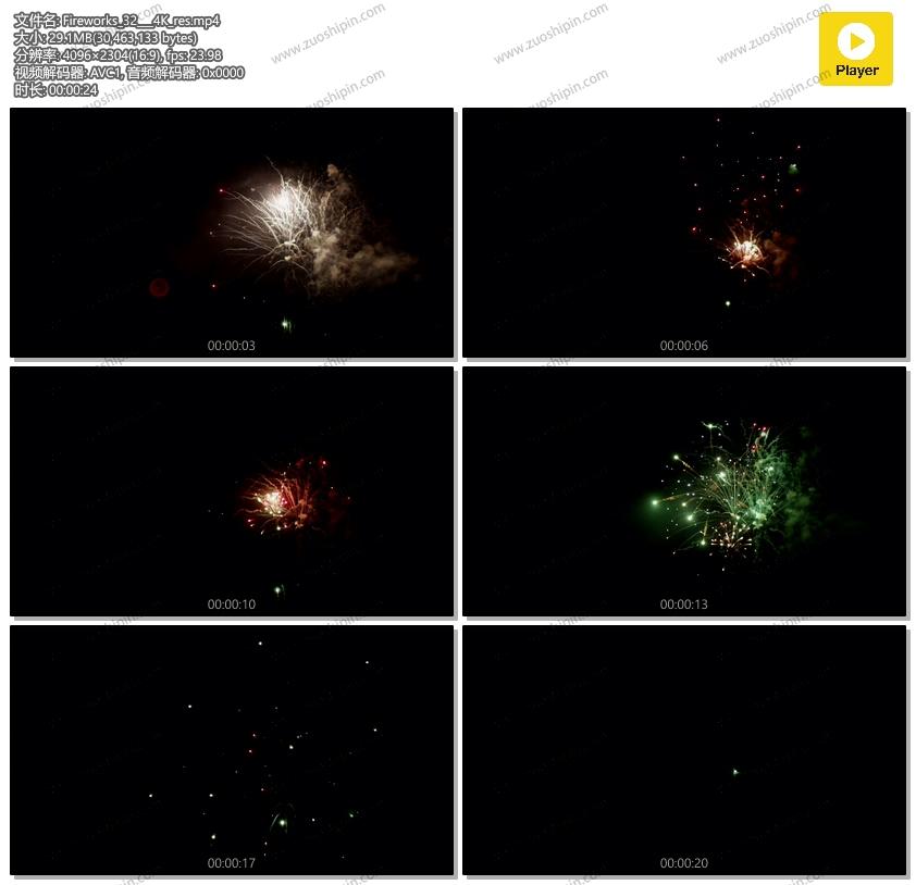 追功网为CG后期爱好者提供高清实拍视频素材 节日素材系列素材:红色和绿色的牡丹烟花4k视频素材在线预览以及高清源文件的下载服务。