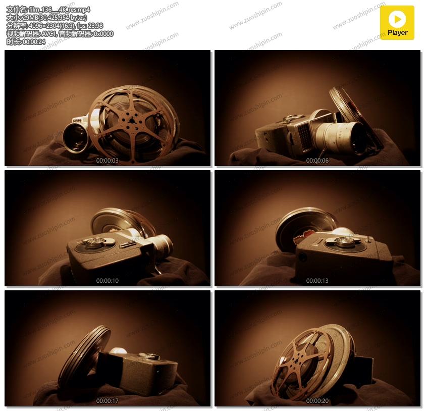 追功网为CG后期爱好者提供高清实拍视频素材物品电器系列素材:展示台上的古董照相机4K视频素材film_136___4K_res在线预览以及高清源文件的下载服务。