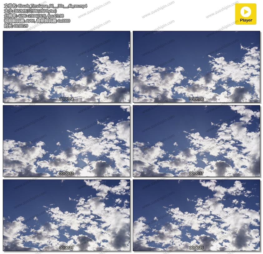 云彩和天空室外夹子。移动在与阳光光芒的蓝天的清楚和明亮的高积云时间间隔。适合您的天气项目或您的镜头中的自由和天堂主题。 4K 4096 x 2304 | 24 fps