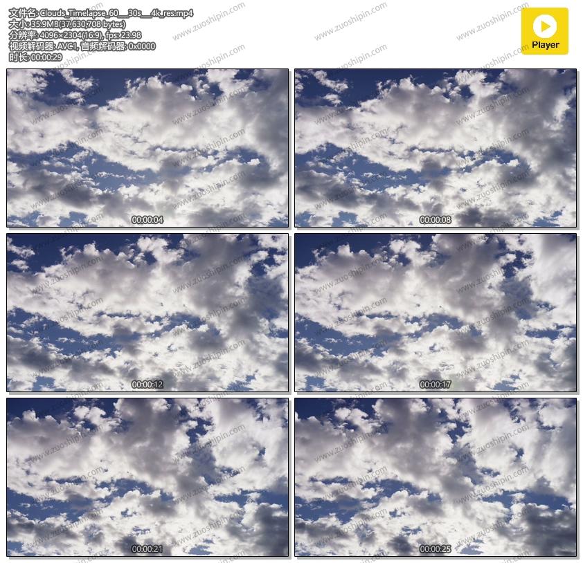 云彩和天空室外夹子。延时摄影的清晰和黑暗的高积云从右到左移动od场景。适合您的天气项目或您的镜头中的自由和天堂主题。 4K 4096 x 2304 | 24 fps