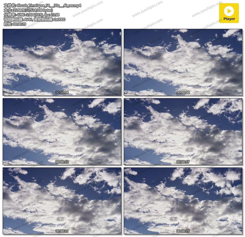 云彩和天空室外夹子。延时摄影的大群高积云慢慢地从右到左移动在蓝色背景上。适合您的天气项目或您的镜头中的自由和天堂主题。 4K 4096 x 2304 | 24 fps