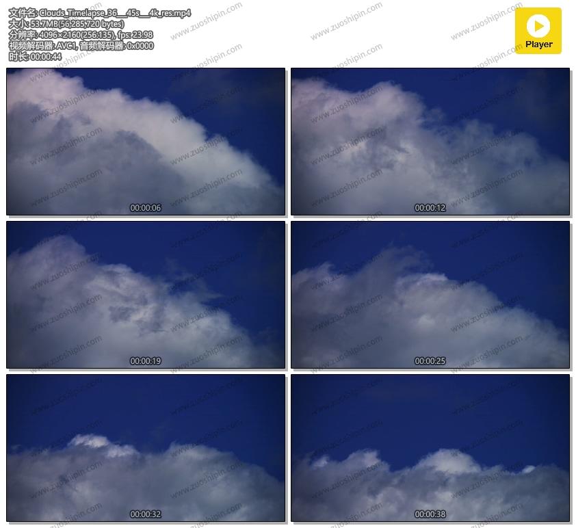 云彩和天空室外夹子。转动和消失在蓝天的积云时间间隔。适合您的天气项目或您的镜头中的自由和天堂主题。 4K 4096 x 2160 | 24 fps