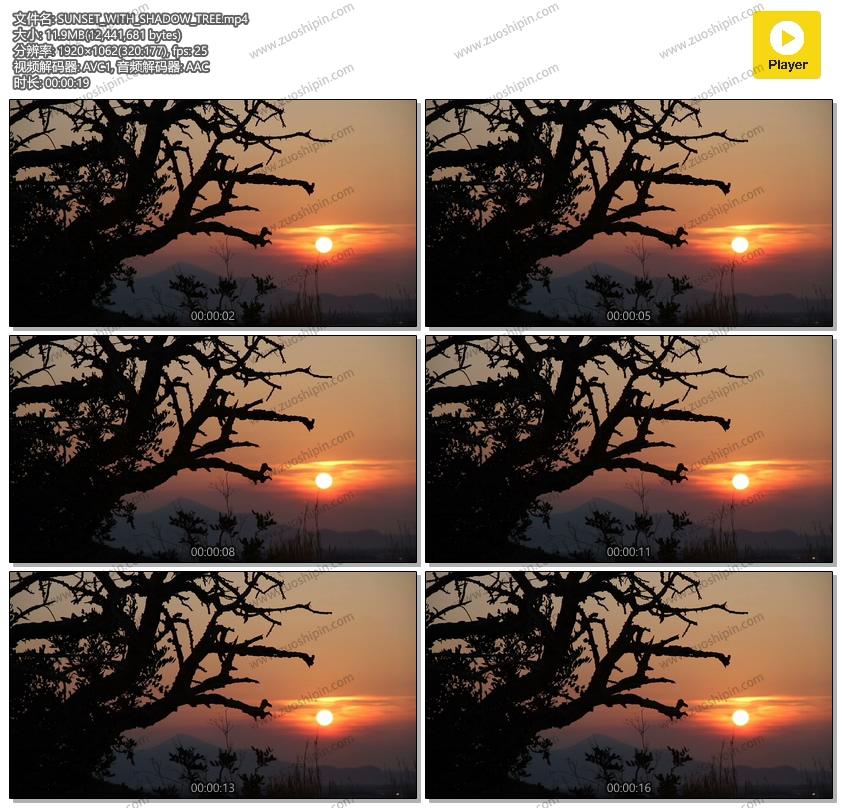 追功网为CG后期爱好者提供高清实拍视频素材自然风景系列素材:枯树的剪影和太阳日落4K视频素材Sunset with Tree Shadow在线预览以及高清源文件的下载服务。