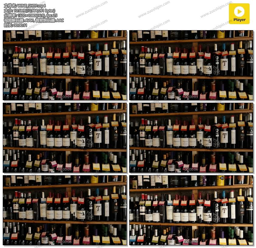 This stock footage shows bottles of wine in a wine shop.