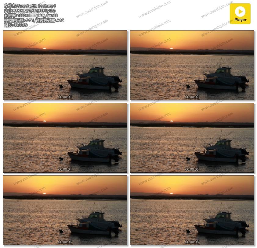 这是在海的日落的储蓄英尺长度有小船的。您可以在下一个项目中使用这个精彩的视频。