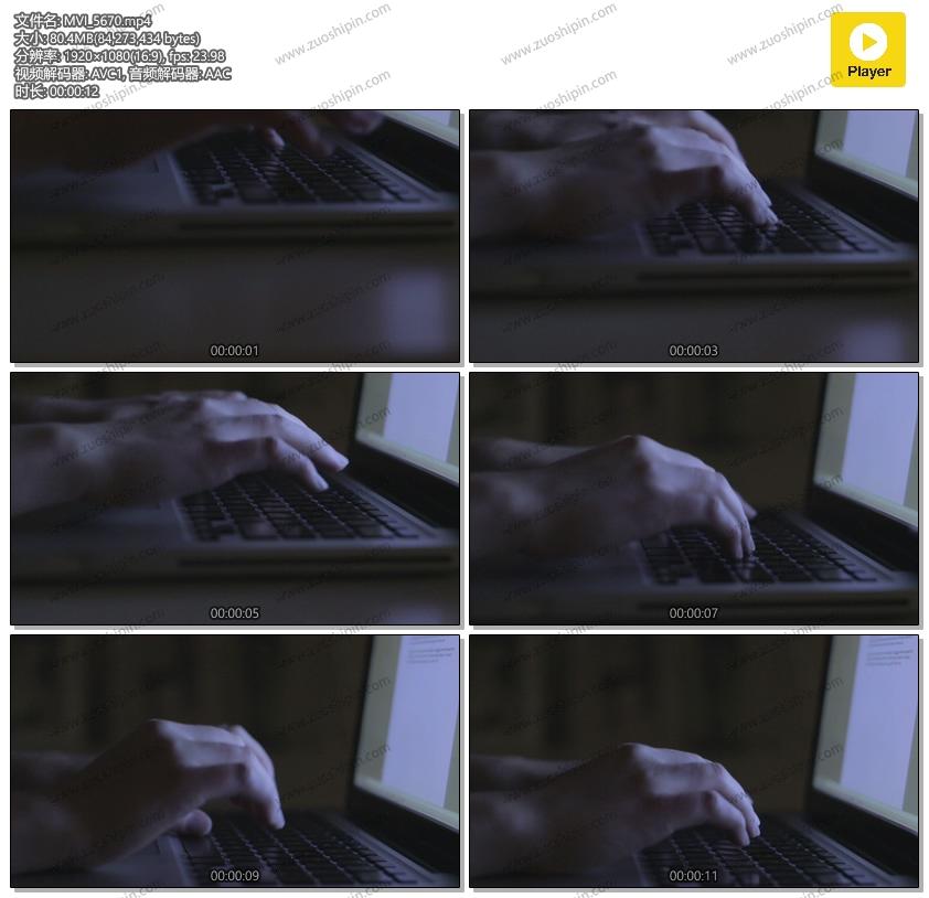 高清视频中,你会看到一个人在黑暗中在笔记本电脑上打字的平移镜头。