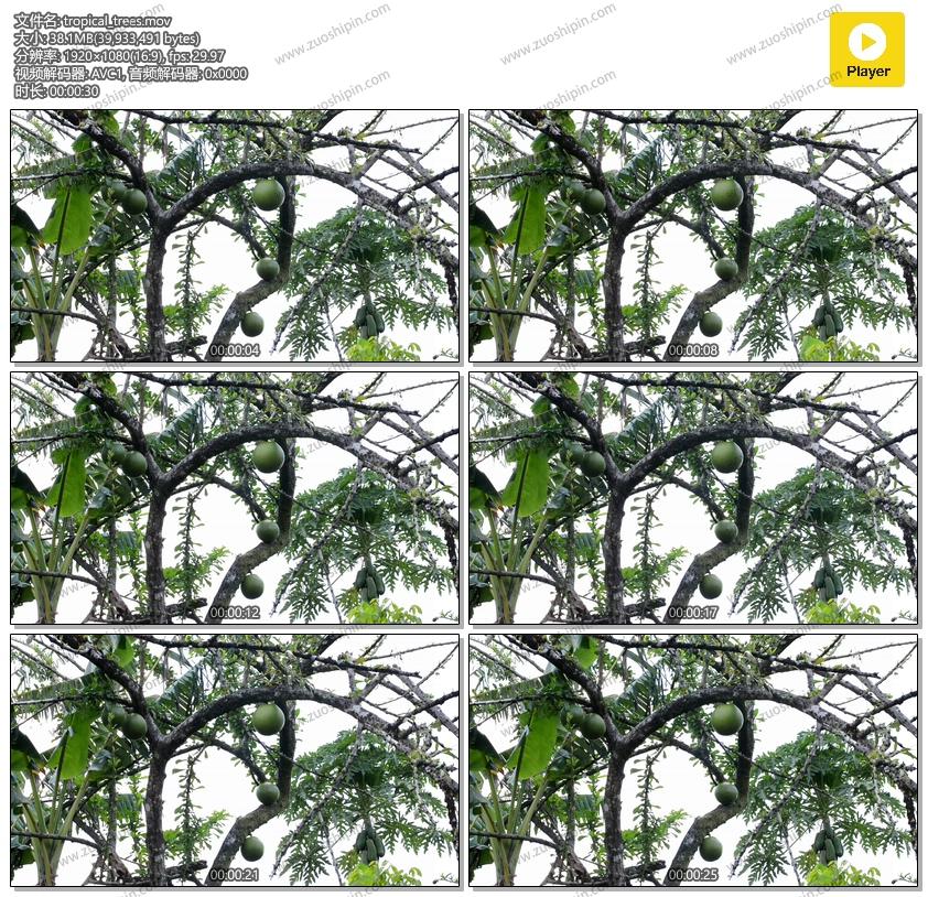 追功网为CG后期爱好者提供高清实拍视频素材物品电器系列素材:热带树木上的绿色果实视频素材Tropical trees.在线预览以及高清源文件的下载服务。