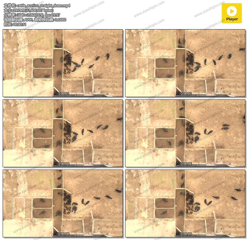 牛拍卖的空中天桥在肯塔基州。农民聚集在牛拍卖会上购买&卖牛。用Mavic Pro无人机拍摄4K。