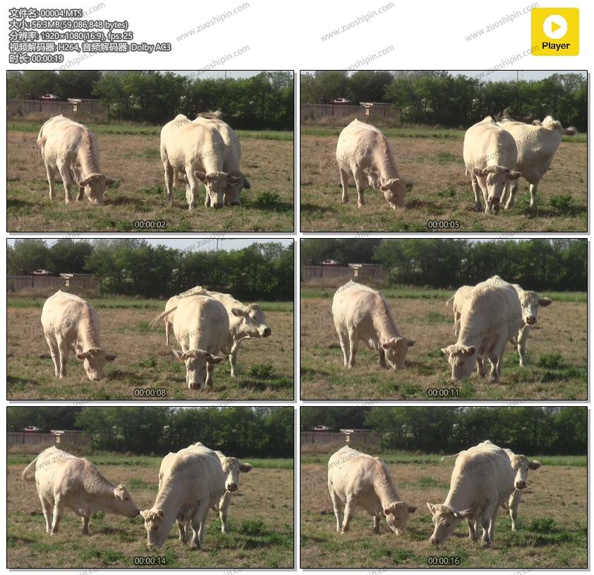追功网为CG后期爱好者提供高清实拍视频素材动物实拍系列素材:白色的奶牛吃草高清视频素材White Cows在线预览以及高清源文件的下载服务。