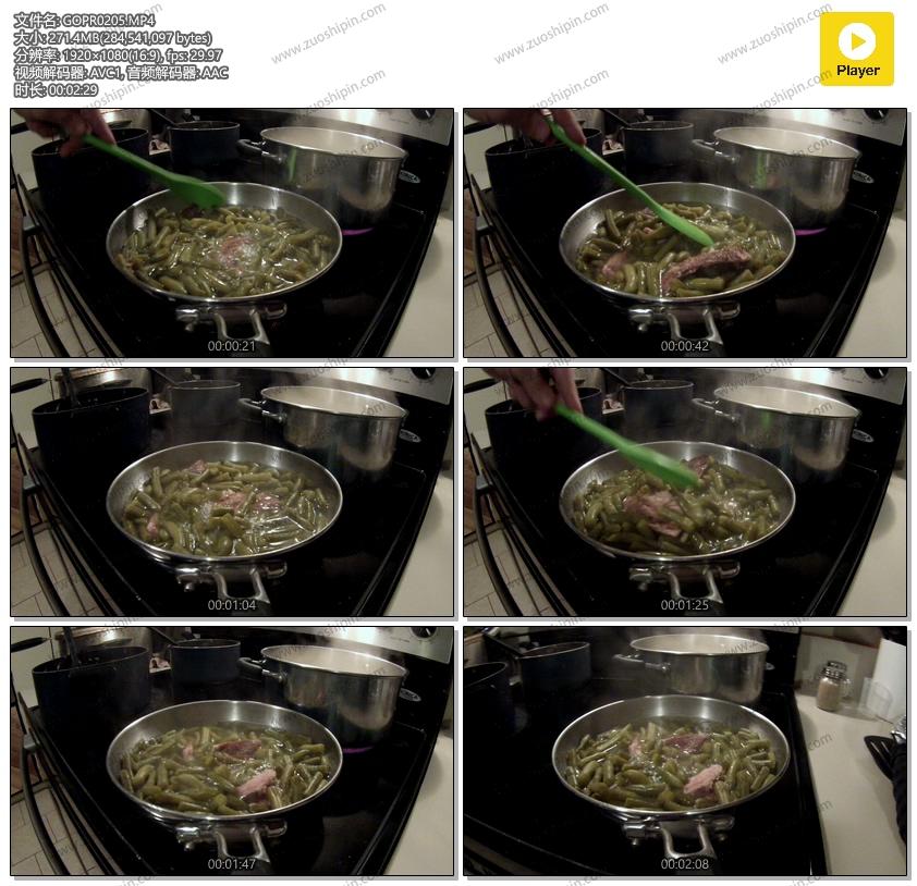 烹调在火炉的青豆和火腿高清视频 - Gopro