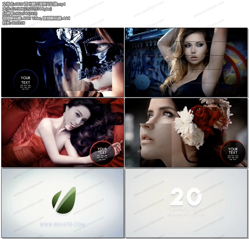 关键词:百叶窗,过渡,视频,相册,标题,文本,照片,切换,AE,模板,魅力